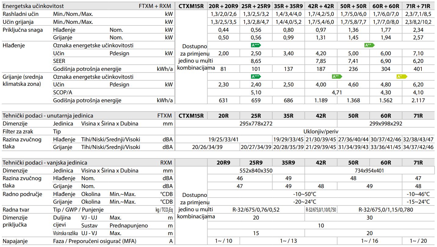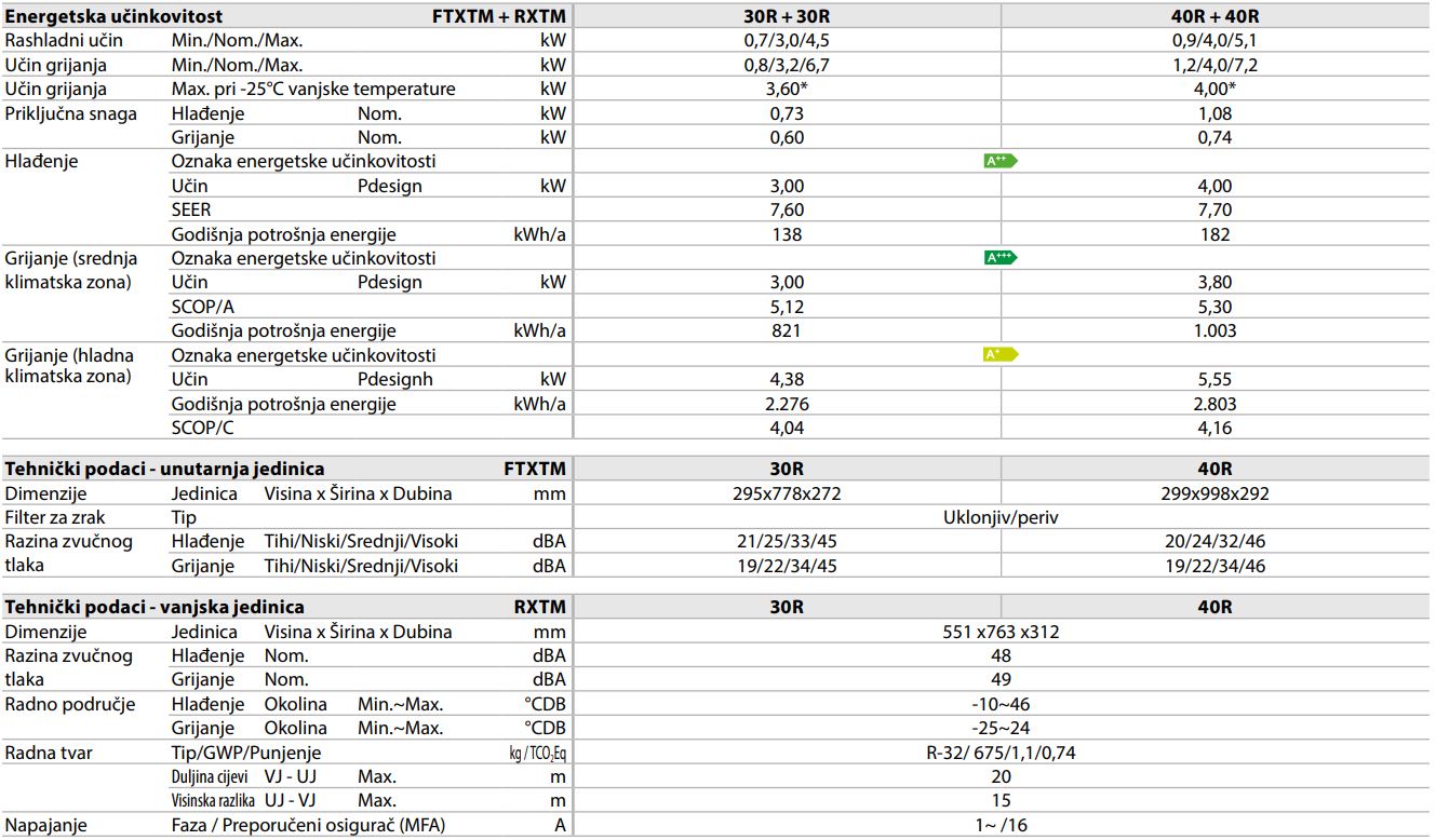 | Jamstvo | Uz besplatnu prijavu na Daikin Stand By Me platformu i redovno servisiranje – 5 godina garancije – UVJET DA PUŠTANJE U POGON ODRADI OVLAŠTENI DAIKIN HCE PARTNER ! |