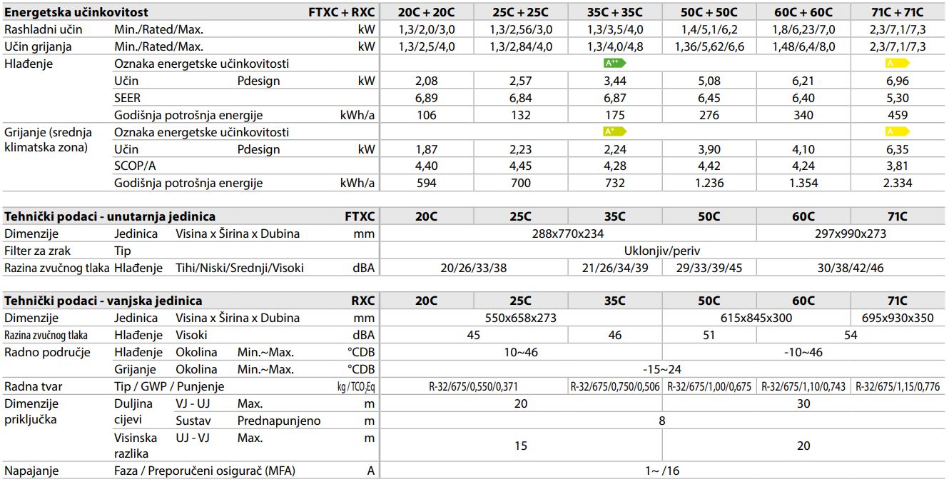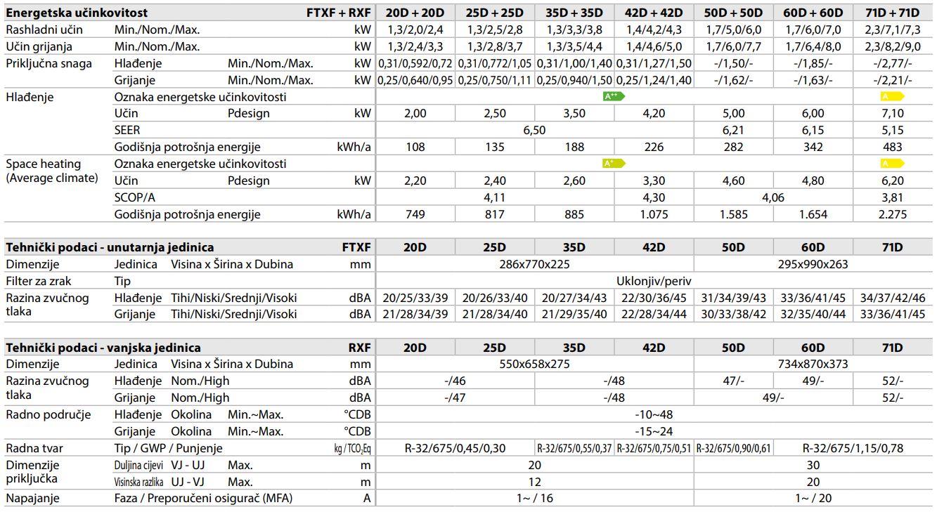 Upit za: Daikin Sensira FTXF-F + RXF-F
